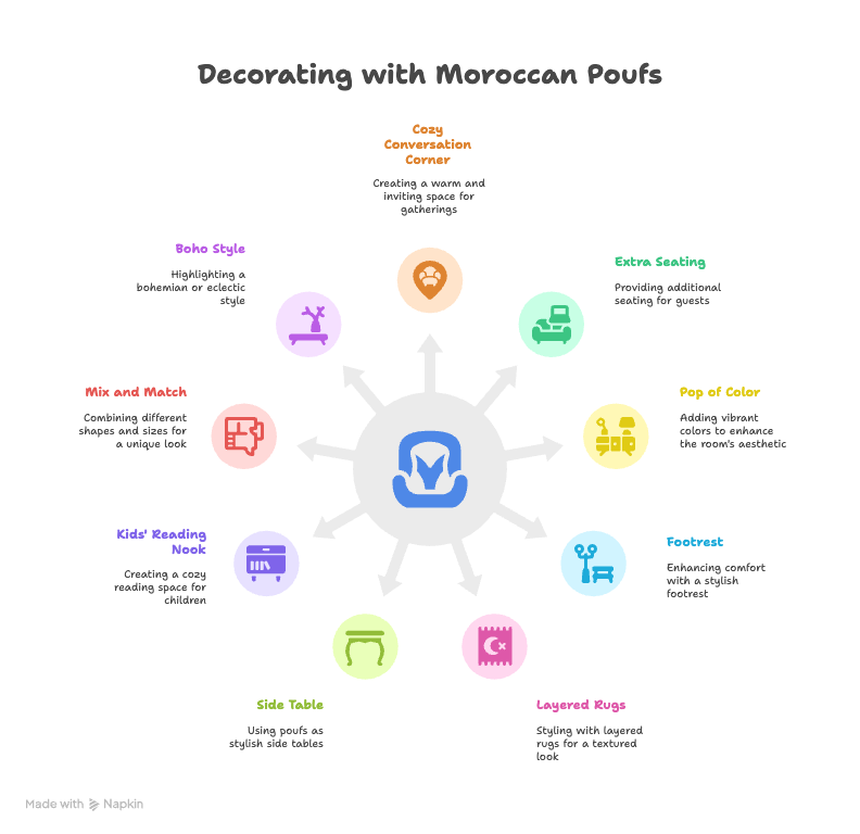 A1: In the living room, display your vintage Moroccan rug to define the seating area, anchor the furniture, and provide a comfortable surface underfoot. You can use a large rug to cover most of the floor or layer a smaller rug over a larger, neutral one for visual depth and interest.