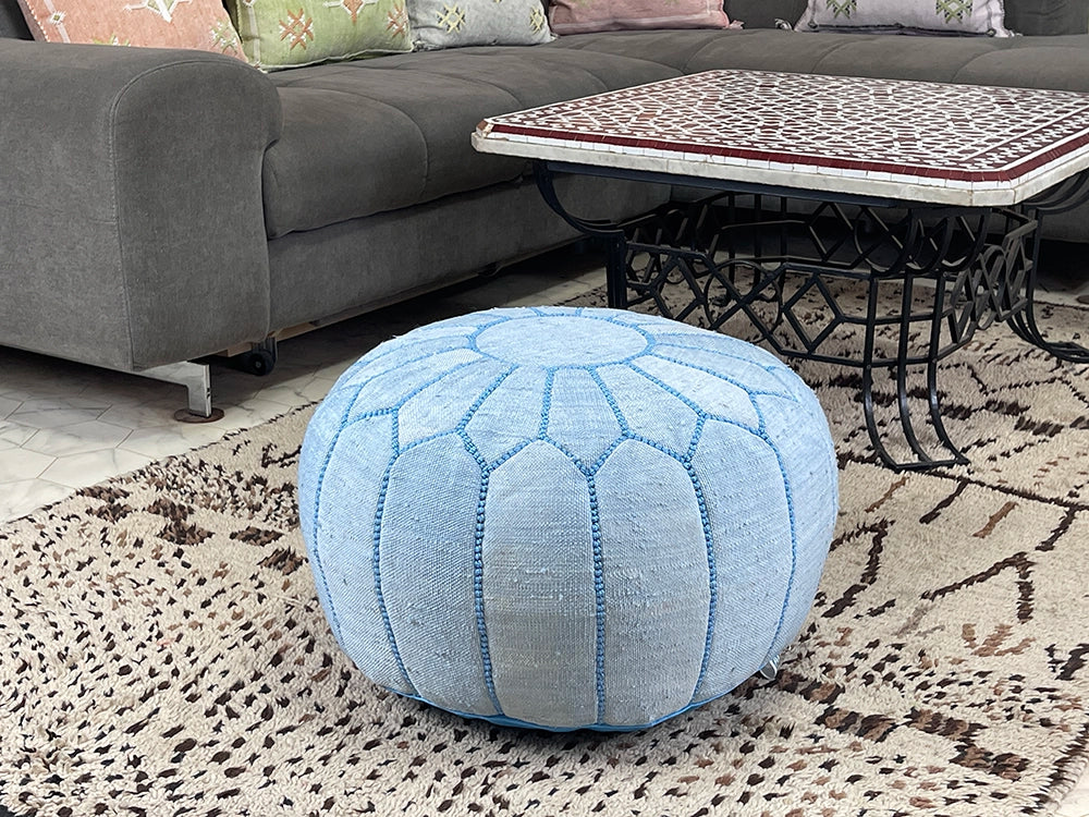 The Azure Horizon Pouf is a testament to versatile design, seamlessly fitting into various decor themes from coastal chic to contemporary elegance. Its sky blue hue and natural texture provide a refreshing touch to any room, whether it's making a statement in the living area or creating a quiet retreat in a reading nook. This pouf is not just furniture; it's a transformative piece that brings the essence of the open sky into your home, enhancing the space with its natural tranquility and stylish presence.