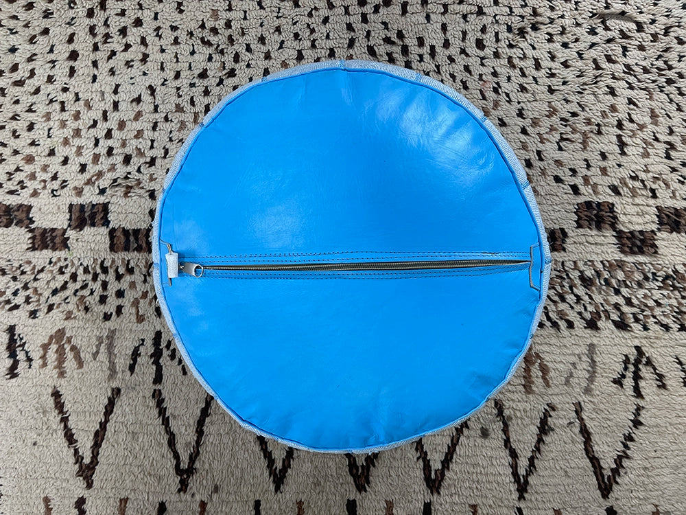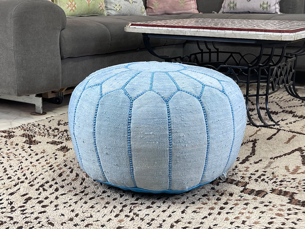 Azure Horizon Sky - Natural Cactus Silk Pouf