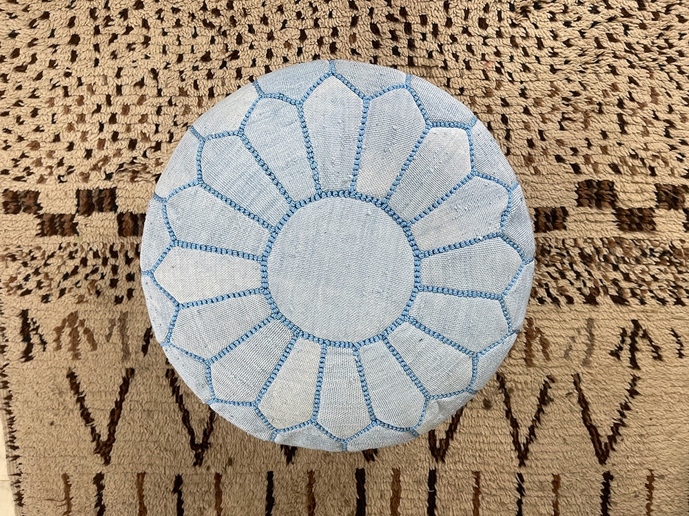 Elevate your space to new heights with our Azure Horizon Sky Blue Cactus Silk Pouf. Crafted with meticulous care and attention to detail, this pouf embodies the serene beauty of the open sky meeting the earth's natural hues.