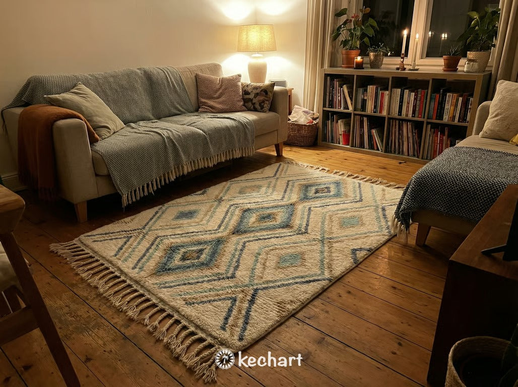 Custom Beni Ourain Rug - Made to Order Moroccan Wool in Blue & Aqua Zigzag