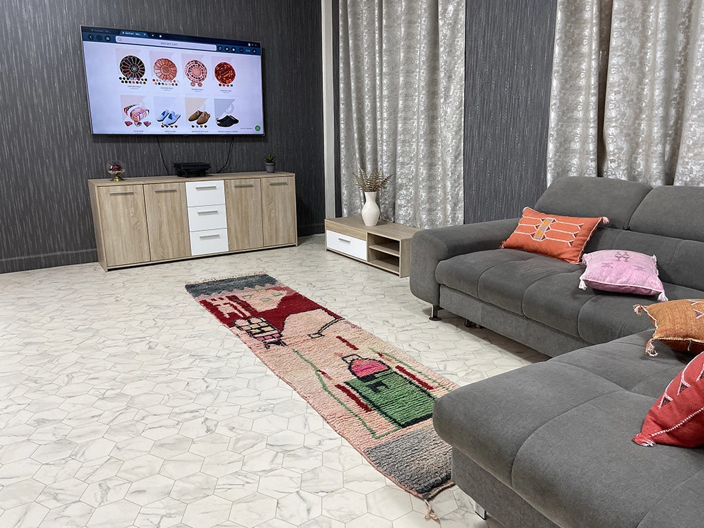 The Kenitra Kaleidoscope rug perfectly encapsulates the bustling energy and cultural richness of Kenitra. Its vivid colors and intricate design reflect the city's lively spirit, offering you a piece of Kenitra's vibrancy right in your home.