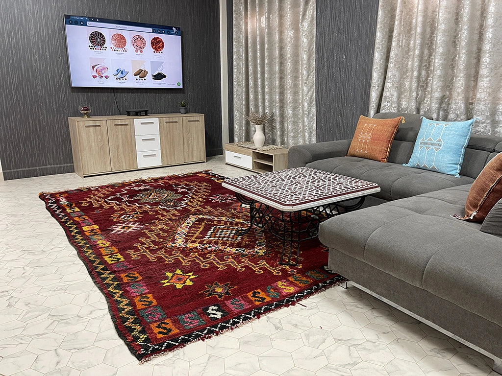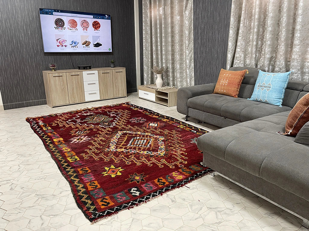 Immerse yourself in the warm and energetic ambiance created by Lamlih's deep Indian pink background. The rich hue exudes a sense of elegance and sets the perfect canvas for the mesmerizing display of Berber motifs, shapes, and symbols.