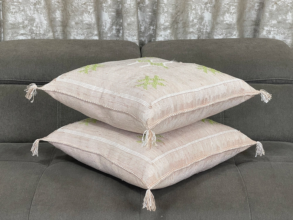 Authenticity: Every pillow is a genuine piece of Moroccan artistry. The Natural Cactus Silk material, sourced and woven in Morocco, has its roots in age-old techniques passed down through generations. These aren't mere pillows; they are tales of a culture rich in art and history.