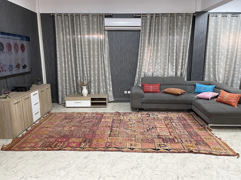 The intricate design of Marhaba Tazakka mirrors the meticulous craftsmanship and artistry of Berber weavers. Each pattern is inspired by real carpets and steeped in cultural significance, telling a story of tradition and cultural heritage. The careful weaving of each motif and element is a testament to the skill and dedication of the artisans who crafted this exceptional piece.