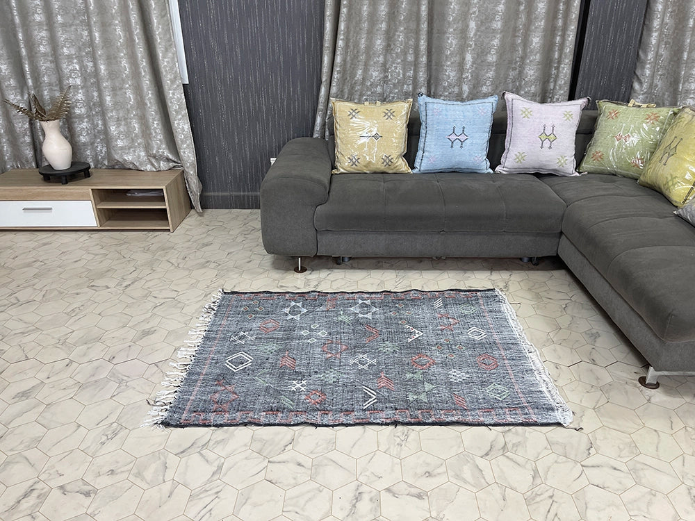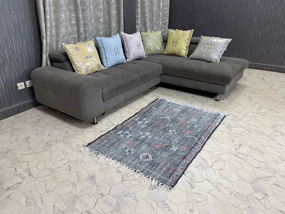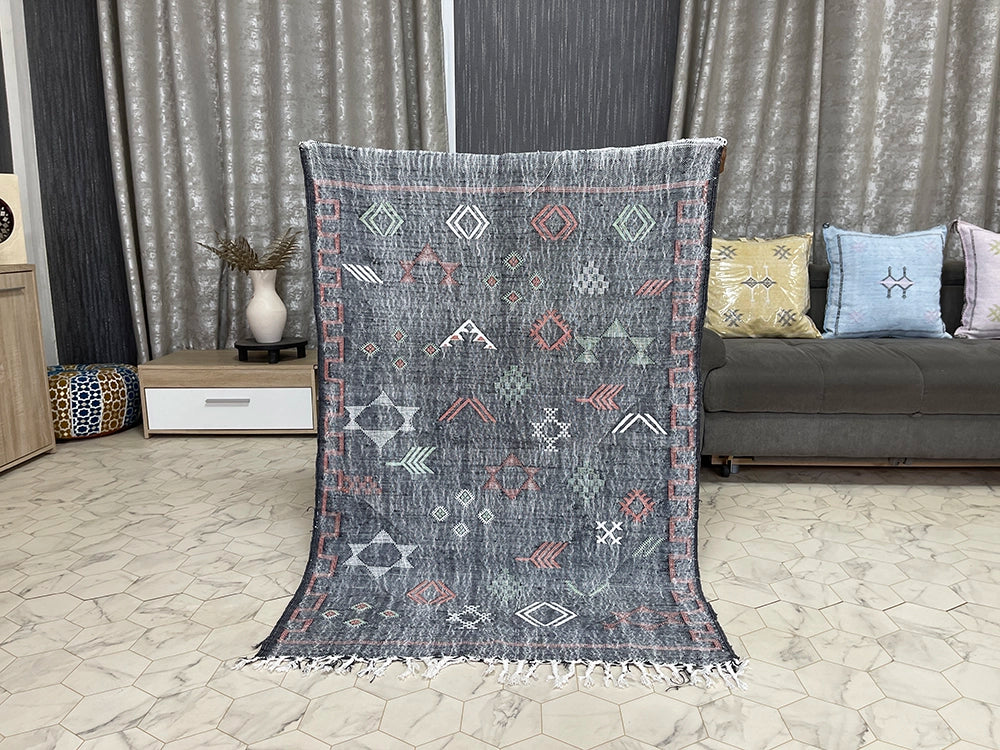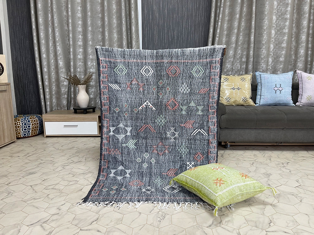 Immerse your space in a touch of sophistication with our Shadowed Elegance Dark Gray Cactus Silk Rug, measuring 97 cm x 150 cm. This rug features the rich allure of dark gray tones and the luxurious softness of cactus silk. Elevate your decor with a sense of understated charm and enjoy the practicality of easy maintenance with its washable nature. Transform your surroundings into a haven of elegance with the timeless beauty of this dark gray cactus silk rug.