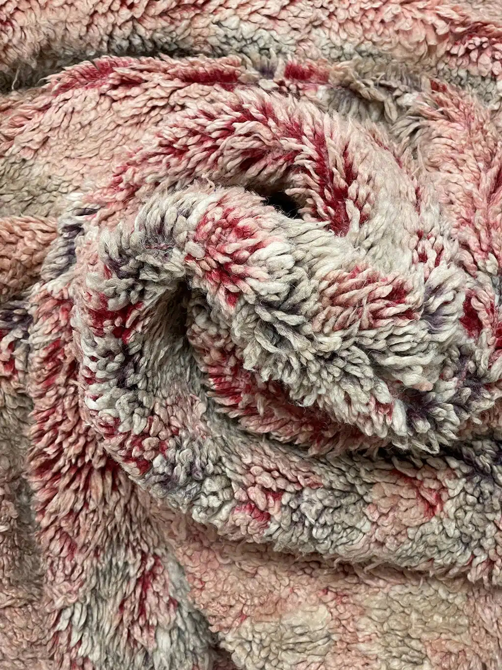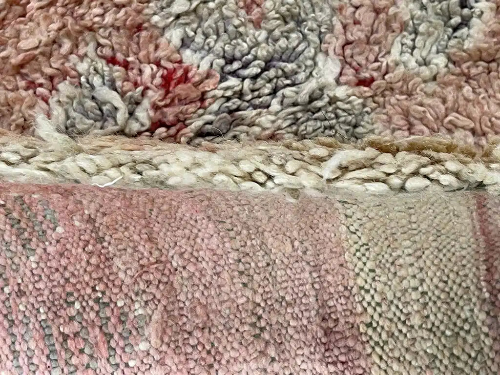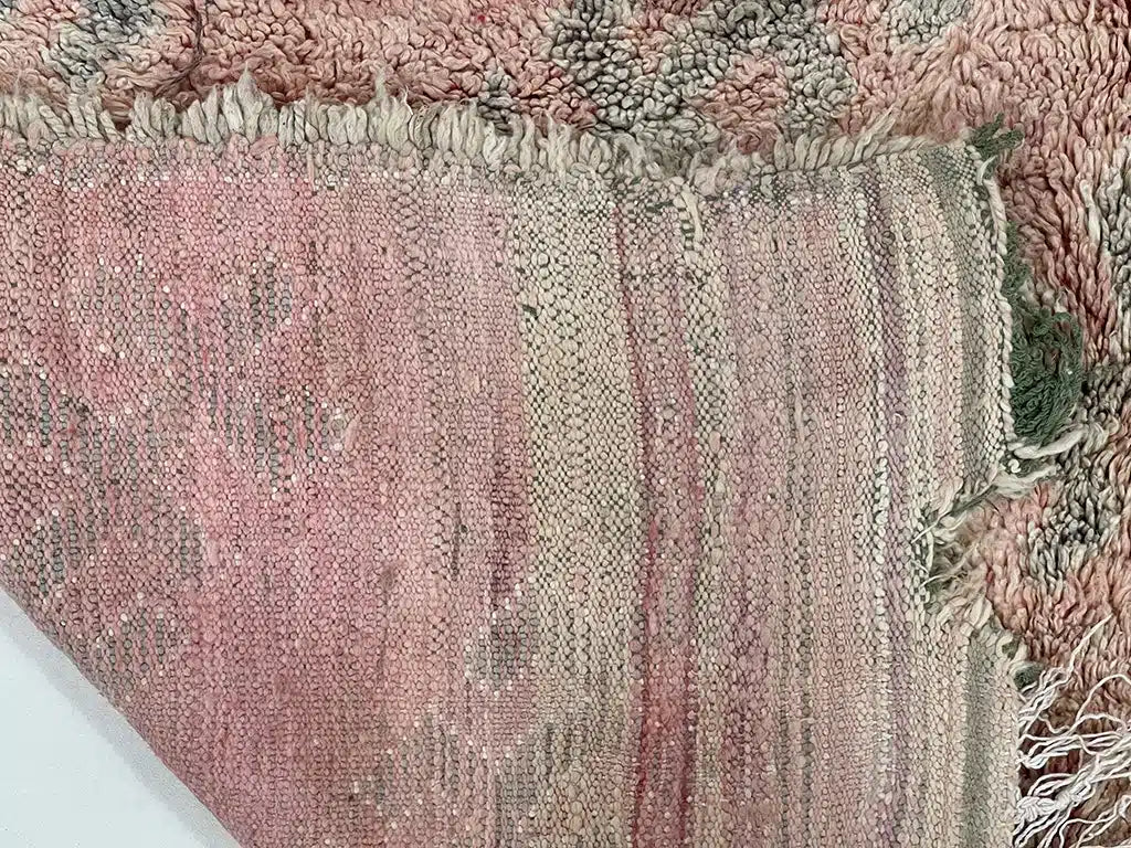 Experience the beauty of a Skoura sunrise with this stunning Boujaad vintage rug, featuring captivating patterns and a warm color palette inspired by the region's stunning desert landscapes and natural beauty.